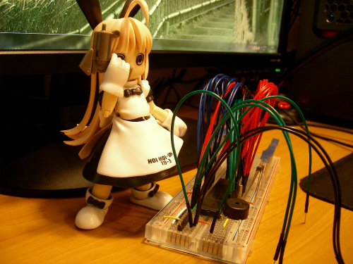 ついにココまで来れたので、時刻を合わせて電池駆動でどれだけ動くのか試験してみようと思ってます。ブレッドボード上で作ったやつの消費電流を測ったら想像以上の電流値(40mA)だったので、時計として運用可能な稼動時間は得られないと思いますが、まぁ、モノは試しです。測定間違いだったと願いたい。